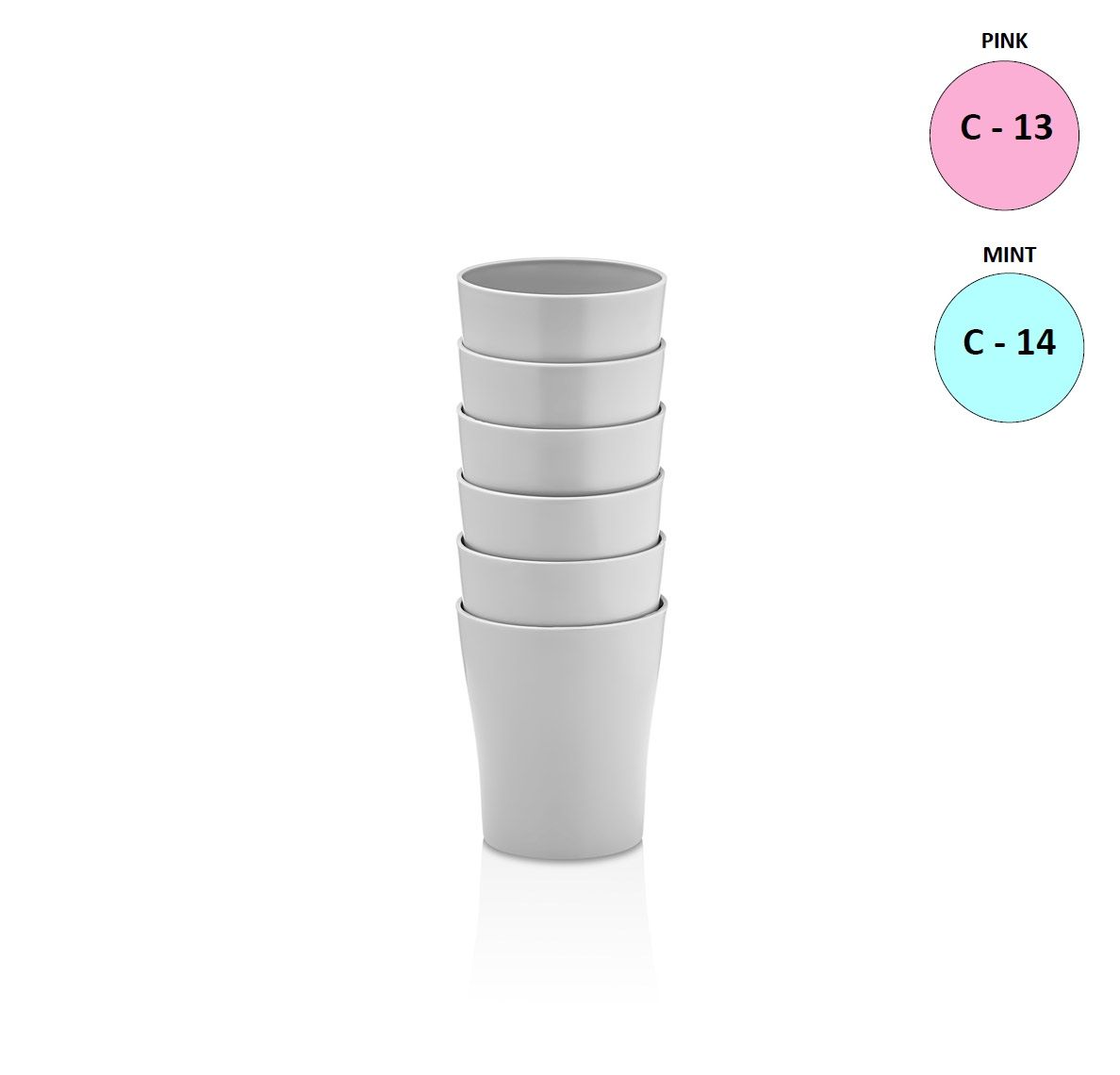 SET VAN 6 BEKERS 28CL DIA.7.5CM H.24CM
